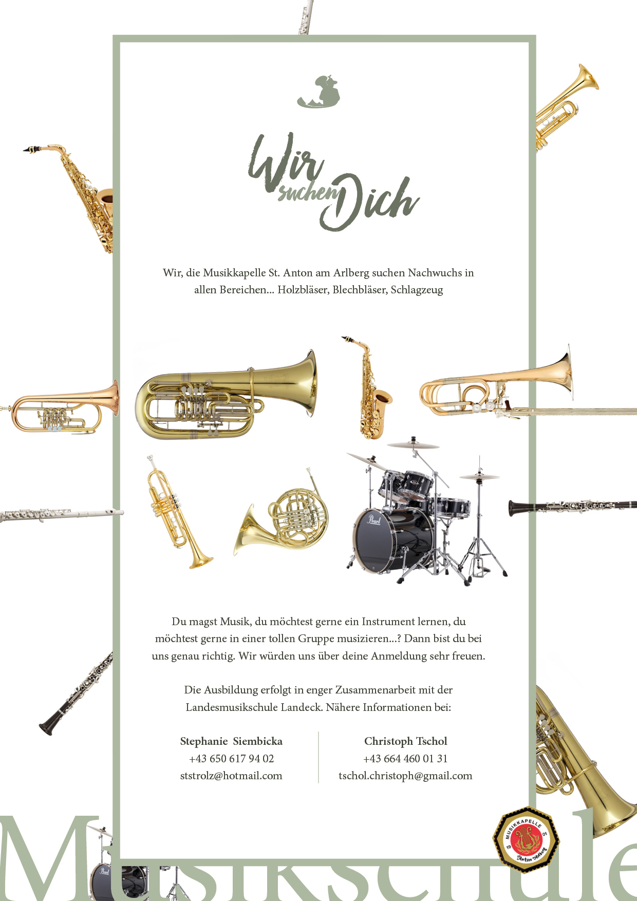 Man kann sich ab sofort bei unseren JugendreferentInnen melden. Wir übernehmen die Anmeldung an der Landesmusikschule Landeck. Natürlich wird auch kostenlos ein Instrument für die Ausbildung zur Verfügung gestellt.